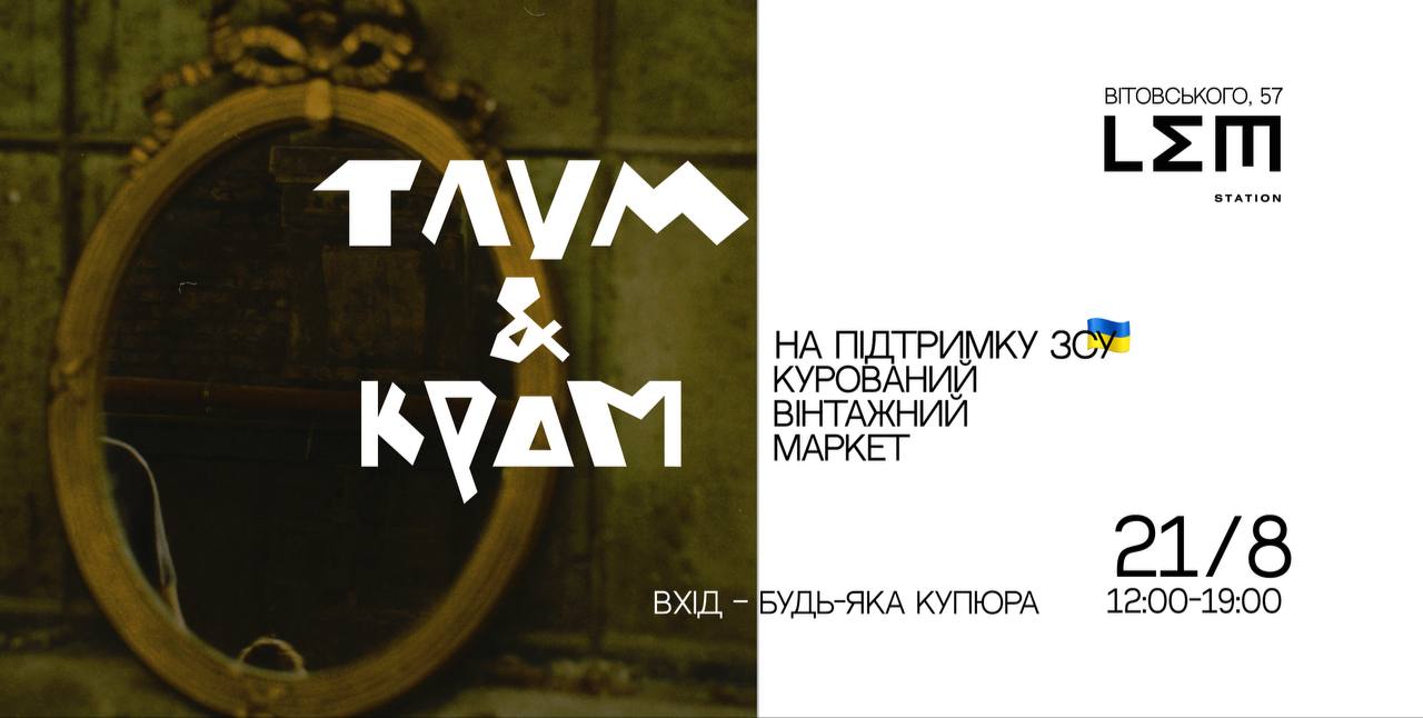 У неділю відбудеться останній ярмарок Тлум-Крам, на якому відвічувачі зможуть придбати: старовинні автентичні вишиті сорочки, вінтажний одяг та прикраси, декор, меблі, предмети інтер‘єру, твори мистецтва та іншу старовину. 30% з кожної покупки підуть на оснащення для військових.